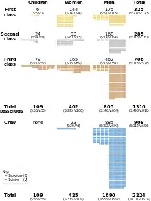 У цей список включені гарантійна група з дев'яти осіб та судновий оркестр з восьми осіб, яким було надано пасажирські каюти, що зумовлює їх відносити як до екіпажу, так і до пасажирів.[5][6]