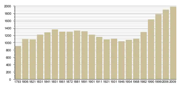 Динаміка населення (base Cassini de l'EHESS pour les nombres retenus jusque 1962[3], base Insee à partir de 1968 (population sans doubles comptes puis population municipale à partir de 2006)[4] · [5] ):