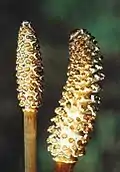 У хвощів елатери мають вигляд чотирьох стрічкоподібних виростів до спор. Ці вирости розвиваються із зовнішніго спірального шару спорангію. Під час дозрівання, стрічки відділяються від внутрішньої стінки і залишаються зачіпленими одна за одну. В результаті спори проростають групами, утворюючи хлорофілоносні гаметофіти.