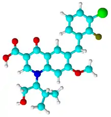 Елвітегравір — (міжнародна транскрипція EVG) — синтетичний противірусний препарат з групи інгібіторів інтегрази для прийому всередину. Елвітегравір розроблений компанією «Gilead Sciences» за участю компанії «Japan Tobacco» та ліцензований у 2005 році.[1][2][3] Елвітегравір пройшов ІІІ фазу клінічних досліджень у США з 2008 до 2011 року[1] та після успішного завершення дослідження[4] був затверджений FDA 27 серпня 2012 року[5] як комбінований препарат разом із тенофовіром, емтрицитабіном та кобіцистатом.[6] У травні 2013 року елвітегравір був схвалений Європейською Комісією та допущений до використання на території ЄС.[7] У листопаді 2013 року елвітегравір був схвалений Єврокомісією для застосування як монопрепарат[8], а у вересні 2014 року як монопрепарат був затверджений і у США.[9]
