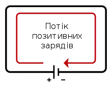 За напрямок струму вибирають рух позитивно заряджених частинок. Отже, напрямок струму в металевих провідниках, є протилежним до напрямку руху електронів.
