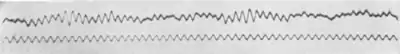 | гамма | вище 30-40Гц | коливання амплітудою до 10 мкВ, вважається ознакою когнітивних процесів і свідомості; наявність коливань цього діапазону амплітудою вище 15 мкВ є патологічною ознакою |