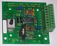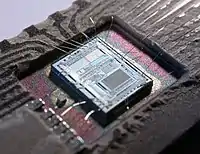 У цифрових схемах сигнал може приймати тільки декілька різних дискретних станів, які зазвичай кодують логічні або числові значення.[3] У переважній більшості випадків використовується бінарна (двійкова) логіка, коли одному певному рівню напруги відповідає логічна одиниця, а іншому — нуль. У цифрових схемах широке застосування знаходять транзистори, з яких будуються логічні вентилі: І, АБО, НЕ і їх різні комбінації. Також, на базі транзисторів створюються тригери — осередки, які можуть знаходиться в одному з декількох стійких станів, і перемикаються між ними при поданні зовнішнього сигналу. Останні можуть бути використані як елементи пам'яті: наприклад, SRAM (статична оперативна пам'ять з довільним доступом) зроблена на їх основі. Інший тип пам'яті — DRAM — заснований на здатності конденсаторів запасати електричний заряд.