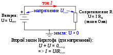 - алгебраїчна сума падінь напруги по будь-якому замкнутому контуру кола дорівнює алгебраїчній сумі ЕРС, діючих уздовж цього ж контуру. Якщо в контурі немає ЕРС, то сумарне падіння напруги дорівнює нулю.