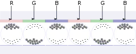 Використовуються кольори блакитний, пурпурний та жовтий, що є так званою субтрактивною системою, яку можна порівняти з принципом, що використовується у струменевому друці, наприклад. Порівнюючи з LCD отримується ще один множник два до яскравості, оскільки не потрібно поляризаторів.[15]
