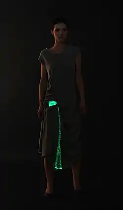 - Електронний текстиль, що містить електронне обладнання (провідники, інтегральні схеми, РК-дисплеї і акумулятори, які вбудовуються безпосередньо в предмети одягу).