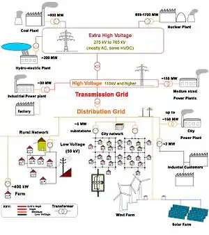 В Україні система електропостачання міста як правило включає елементи енергетичної системи, що забезпечують розподіл електроенергії споживачам. До міських електричних мереж відносяться: