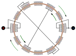 Рухаючись далі, A1 торкається щітки Z і частково розряджається у зовнішнє коло на електричний конденсатор, виконаний у вигляді лейденської банки. При подальшому обертанні дисків, А1 торкається щітки X, яка пов'язана провідником зі щіткою X1, і знову отримує заряд, цього разу негативний, який відштовхується негативно зарядженим сегментом В2 (що знаходяться в цей момент напроти сегмента на диску А, що контактує зі щіткою X1). Таким чином, позитивний заряд переноситься справа наліво верхньою частиною диска А, а негативний зліва направо його нижньою частиною.