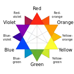 Кольорова зірка, що містить первинні, вторинні і третинні кольори.