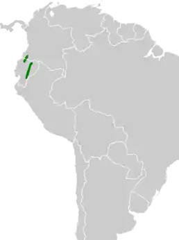 Короткокрилі еленії поширені на західних схилах Анд на південному заході Колумбії (Нариньйо) та на північному заході Еквадору (на південь до Пічинчи), а також на східних схилах Анд в Еквадорі (від Напо до Морона-Сантьяго). Вони живуть у вологих гірських тропічних лісах. Зустрічаються на висоті до 2500 м над рівнем моря.