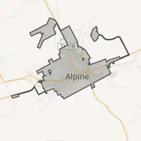 - Geographic Identifiers: 2010 Demographic Profile Data (G001): Alpine city, Texas. U.S. Census Bureau, American Factfinder. Процитовано 22 квітня 2014.(англ.) Наведено за англійською вікіпедією.