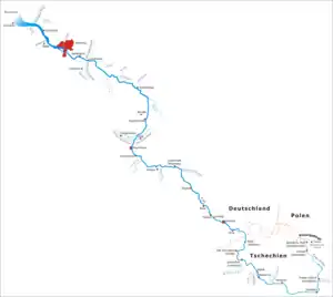 Ліві притоки — Влтава, Огрже, Мульде, Заале, Оре, Мюгліц, Осте.