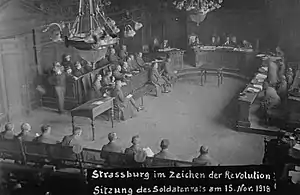 Після повстання в Кілі, що стало початком Листопадової революції в Німеччині, 15 000 моряків з Ельзасу та Лотарингії, що служили в Імперському флоті, стали повертатися додому. Основна їх частина прибула в Ельзас наступного дня після взяття влади та формування Радою в Мюнхені тимчасового уряду Курта Ейснера і була зустрінута величезною маніфестацією, що закінчилася проголошенням робітничої та солдатської Ради міста Страсбург 10 листопада 1918 року.