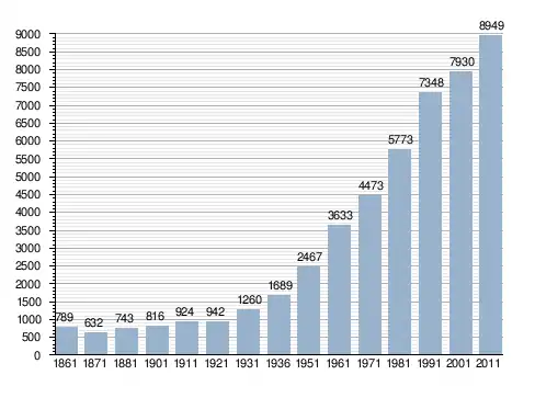 Станом на 31 грудня 2014 року в муніципалітеті офіційно проживав 301 іноземець з 33 країн, серед них 74 громадяни країн Євросоюзу та 29 громадян України.[4]
