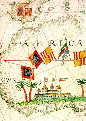 Під час Війни за кастильську спадщину поблизу Ельміни в 1478 році відбулась морська Гвінейська битва за контроль над африканською торгівлею (золото, раби, слонова кістка та перець малегета) між кастильською армадою з 35 каравел та португальським флотом. Битва закінчилася цілковитою португальською перемогою. В результаті перемоги суверенітет Португалії над західноафриканськими територіями отримав офіційне визнання від Кастилії і католицьких королів, що було закріплено в Алкасоваському договорі 1479 року[2][3]. Битва при Ельміні була стала першою морською колоніальною битвою між європейськими державами.