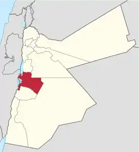 Провінція складається з 10 нахій (районів). Вона межує з іншими регіонами Йорданії: провінціями Мадаба та Ель-Асіма на півночі, провінцією Маан на сході, провінцією Ет-Тафіла на півдні та Мертвим морем на заході.