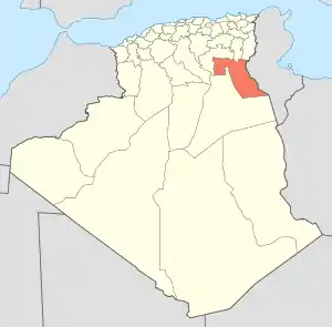На сході проходить кордон з Тунісом. На півночі межує з вілаєтами Хеншела та Тебесса, на північному заході — з вілаєтом Біскра, на півдні — з вілаєтом Уаргла.