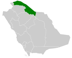 На сході межує з Східною провінцією, на півдні з провінцією Хаїль, на заході з провінцією Ель-Джавф, на північному заході з Йорданією, на півночі з Іраком.