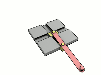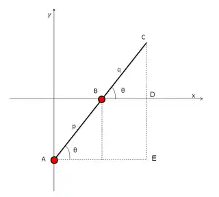 Нехай C — це кінець стрижня, і A, B — шарніри на повзунах. Нехай p і q — відстані від A до B, і від B до C, відповідно. Координатні осі y та x проведемо таким чином, що рух повзунів A і B буде відбуватись уздовж цих осей, відповідно. У випадку, коли стрижень утворює кут θ з віссю x, координати точки C визначаються рівняннями