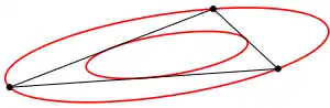 Вписаний і описаний еліпси Штейнера для трикутника. Показані червоним кольором