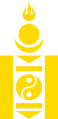 В часи МНР використовувався подібний герб, але з іншими елементами. Замість літаючого жеребця зображувався вершник на коні, на фоні гір і сходу сонця. Буддистські символи були замінені соціалістичними. У нижній частині герба містився напис БНМАУ (Бүгд Найрамдах Монгол Ард Улс, Монгольська Народна Республіка)