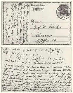 Нетер і Фішер діставали справжнє задоволення від математики й часто обговорювали лекції після їх завершення. Відомо, що Нетер надсилала Фішеру листівки, з яких видно, як продовжує працювати її математична думка[27][28][29].