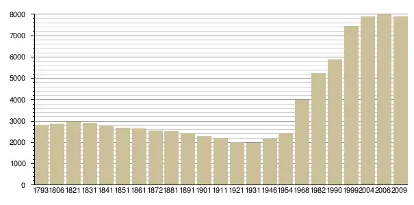 - Cassini : recensements avant 1968 ; INSEE : recensements après 1968 ; enquête INSEE : 2004 ; recensement INSEE 2006., наведено за французькою вікіпедією