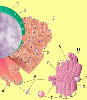 - Шорсткий (гранулярний) ендоплазматичний ретикулум,