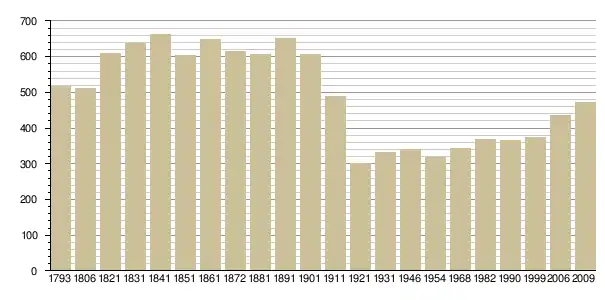Динаміка населення (base Cassini de l'EHESS pour les nombres retenus jusque 1962[3], base Insee à partir de 1968 (population sans doubles comptes puis population municipale à partir de 2006)[4] · [5] ):