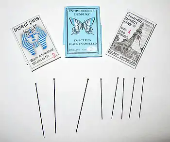Шпильки під номерами 000 — 0 використовуються для прикріплення дрібних комах з розмахом крил до 2 см. Для комах середніх розмірів використовуються шпильки № 1 і 2. Для великих комах використовуються шпильки № 3. Шпильки під номерами 4 — 7 використовуються для прикріплення великих комах (окрім метеликів), переважно, для жуків.