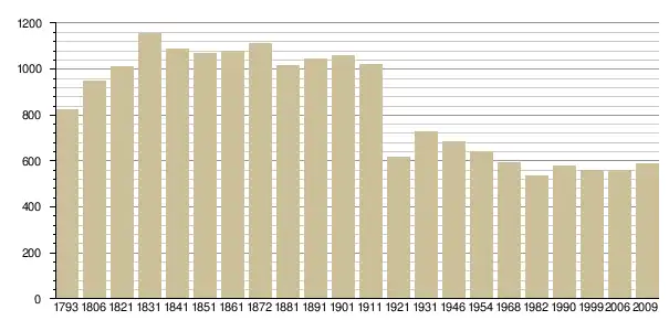 Динаміка населення (base Cassini de l'EHESS pour les nombres retenus jusque 1962[3], base Insee à partir de 1968 (population sans doubles comptes puis population municipale à partir de 2006)[4] · [5] ):
