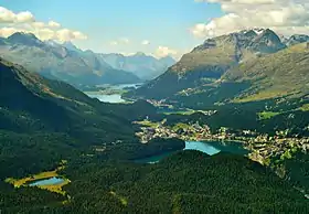 Малоя, Зільс, Сільваплана, Сурлей, Чампфер, Санкт-Моріц, Челеріна, Понтрезіна, Самедан, Бевер, Ла Пунт-Чамуешч, Мадулайн, Цуоц, Шчанф, Цінуошчел.