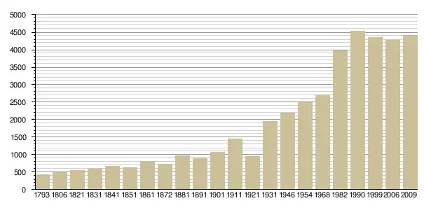 Динаміка населення (base Cassini de l'EHESS pour les nombres retenus jusque 1962[3], base Insee à partir de 1968 (population sans doubles comptes puis population municipale à partir de 2006)[4] · [5] ):