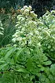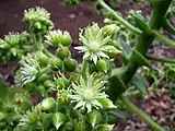 Суцвіття заввишки 30-80 см, завширшки 20-30 см. Квітки двостатеві, актиноморфні, восьмичленні. Чашолистки залозисто-опушені, завдовжки до 3 мм. Пелюстки еліптичні, білувато-зелені або жовтуваті, завдовжки 7-9 мм, завширшки 1,5-2 мм. Тичинки голі.