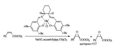 Каталізоване сполуками мангану(ІІІ) асиметричне епоксидування алкенів. Енантіо- і діастереоселективність реакції залежить від природи субстрату.