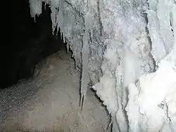 Форми виділення: білі голчаті кристали, щільні і землисті агрегати, гроноподібні натіки, кірочки, нальоти і вицвіти.