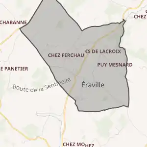 - Розташування муніципалітету Еравіль на мапі Франції та сусідні муніципалітети