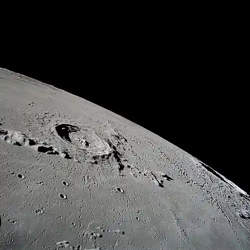 - Знімок кратера з роздільною здатністю 1,3 м/піксель, зроблений зондом LRO. Видно центральні гірки.