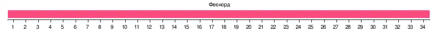 | Феєнорд | 3 - 1 | 1 - 1 | 5 - 2 | 4 - 1 | 8 - 0 | 2 - 0 | 2 - 2 | 3 - 1 | 4 - 0 | 3 - 0 | 2 - 1 | 5 - 0 | 6 - 1 | 2 - 0 | 2 - 0 | 3 - 1 | 1 - 0 | |