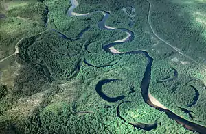 Річище звивисте на багатьох ділянках по всій довжині річки. Річка утворює кілька водоспадів та порогів, на певних ділянках протікає рифтовими долинами. Гирло річки являє собою відносно широку дельту з пісковими островами. Більшу частину площі річкового басейну — 80 % — займають ліси, болота займають 13,5 % площі басейну, озера — 2,3 %.[3]