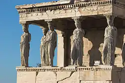 Це перший в історії світового мистецтва випадок, коли використано подібні жіночі фігури тримати балки. П'ять каріатид Пандрозейона й досі залишились стояти на своїх місцях. Шоста ж разом із частинами архітрава та парапету зберігається в Британському музеї. В Афінах вона замінена теракотовою копією.