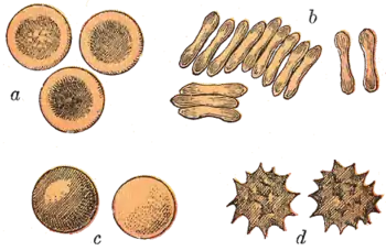 Еритроцити у людини і ссавців здебільшого мають форму двоввігнутих дисків, їх називають дискоцитами. У нормі дискоцити становлять 80 % від загальної кількості еритроцитів. Трапляються й інші форми еритроцитів — планоцити (мають плоску поверхню), сфероцити (кулясті), ехіноцити (мають шипи) тощо. Таку різноманітність форм у нормі позначають терміном фізіологічний пойкілоцитоз. Коли ж кількість змінених форм еритроцитів перевищує 20 %, те ж явище має назву патологічний пойкілоцитоз. Форму еритроцитів підтримує бета-сіа-глікопротеїн в еритроцитарній мембрані та спеціальний каркас, побудований з білка спектрину, який прилягає до плазмолеми і пов'язаний з нею іншим білком — анкерином.