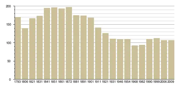 Динаміка населення (base Cassini de l'EHESS pour les nombres retenus jusque 1962[3], base Insee à partir de 1968 (population sans doubles comptes puis population municipale à partir de 2006)[4] · [5] ):