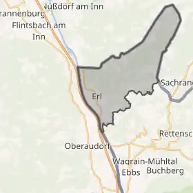 Ерль лежить у долині річки Інн, приблизно 15 км на північ від Куфштайна на кордоні з Баварією.
