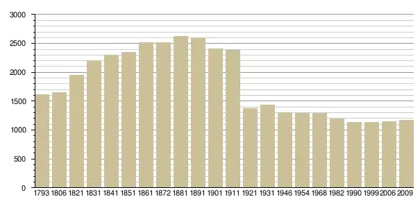 Динаміка населення (base Cassini de l'EHESS pour les nombres retenus jusque 1962[3], base Insee à partir de 1968 (population sans doubles comptes puis population municipale à partir de 2006)[4] · [5] ):