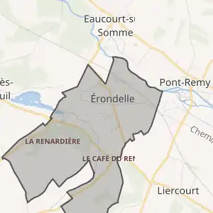 - Розташування муніципалітету Ерондель на мапі Франції та сусідні муніципалітети