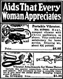 Вдосконалення способів генітального масажу привело до винаходу вібратора. На рубежі XIX—XX століть поширення електрики в побуті сприяло виходу вібраторів на споживчий ринок. Хатній електровібратор був одним з перших побутових електроприладів: він з'явився на 9 років раніше за пилосос, і за 10 років раніше за електричну праску. Каталог компанії Sears за 1918 р. містить оголошення про портативний вібратор з аксесуарами, названий «дуже корисним і прийнятним для використовування в побуті»[7].