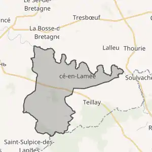 Муніципалітет розташований на відстані[2] близько 320 км на захід від Парижа, 33 км на південь від Ренна.