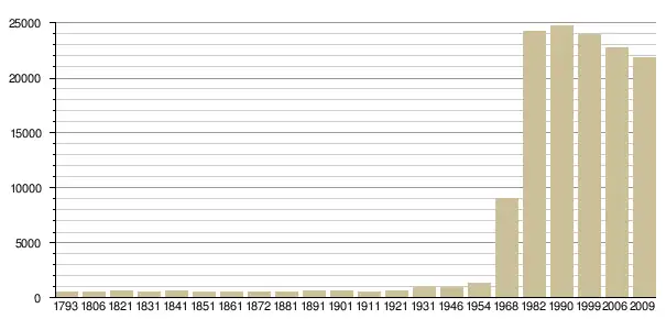 Динаміка населення (base Cassini de l'EHESS pour les nombres retenus jusqu'en 1962[4], base Insee à partir de 1968 (population sans doubles comptes puis population municipale à partir de 2006)[5] · [6] ):