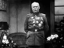 Е́ріх Людендо́рф (нім. Erich Ludendorff; 9 квітня 1865 — 20 грудня 1937) — німецький військовий та політичний діяч, генерал від інфантерії часів Першої світової війни. Військовий теоретик, автор концепції «тотальної війни». З початку Великої війни начальник штабу у Гінденбурга, зіграв центральну роль у перемозі кайзерівських військ у битві за Льєж, і особливо у розгромі російських військ під Танненбергом, результатом чого здобув національну славу в Німецькій імперії. Брав участь у Галицькій битві[1]. З серпня 1916 року генерал-квартирмейстер Великого німецького Генерального штабу при Гінденбурзі, і фактично ініціатор та керівник усіх операцій німецької імперської армії. Після поразки Німеччини у війні провідна фігура правого руху країни і суттєво сприяв приходу нацистів до влади.